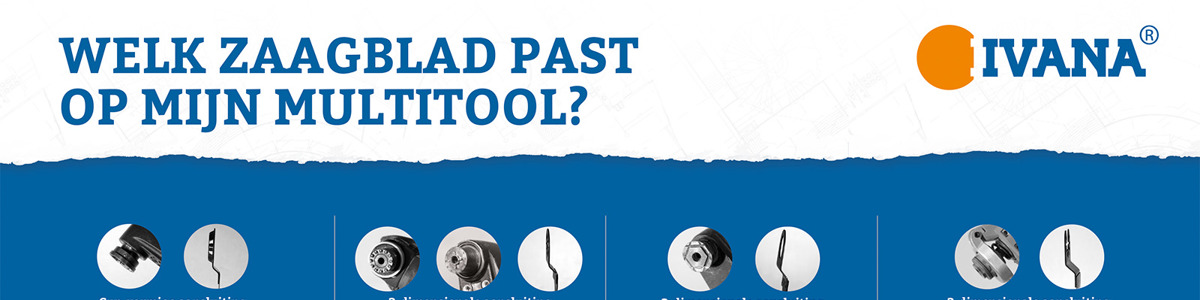 Wij krijgen regelmatig de vraag welk Ivana zaagblad geschikt is voor welke multitool. Met deze infokaart vind je snel het juiste blad voor de juiste machine. De kaart linkt door naar de webshop zodat je het juiste blad ook direct kunt bestellen.